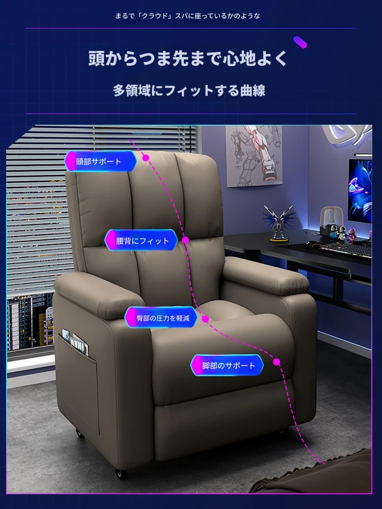 ゲーミングチェア ソファチェア ネットカフェ用 ライフスタイルチェア 家庭用 ゲームチェア スペースカプセル型 マルチファンクション 一等級のリラックス くつろいで寝転べる!