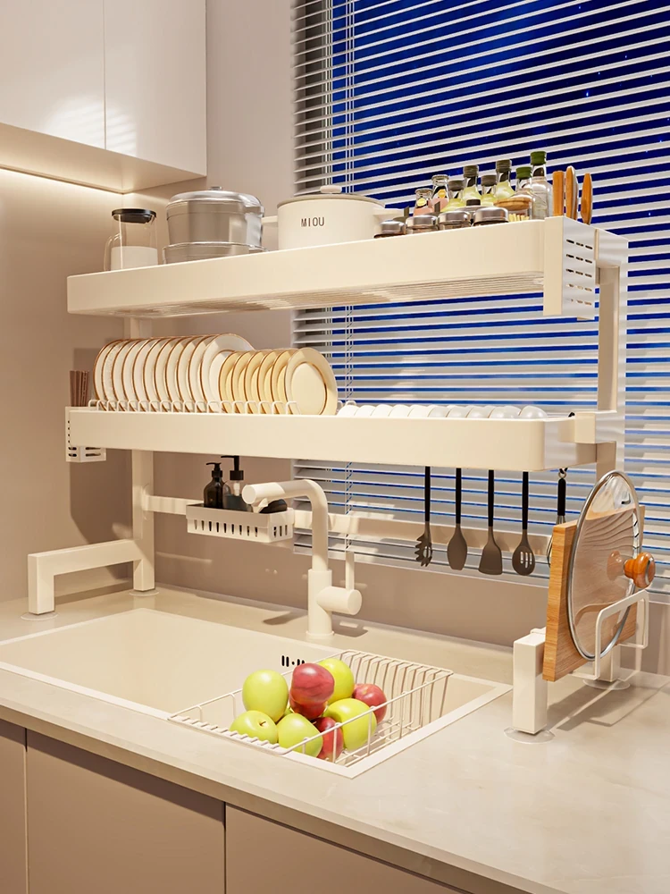 キッチンシンク用マルチ収納ラック|食器整理と水切りが一体化!洗い物もスッキリ解決!大容量でスペースを有効活用、シンク上にぴったりフィット!おしゃれで実用的な食器収納を実現!
