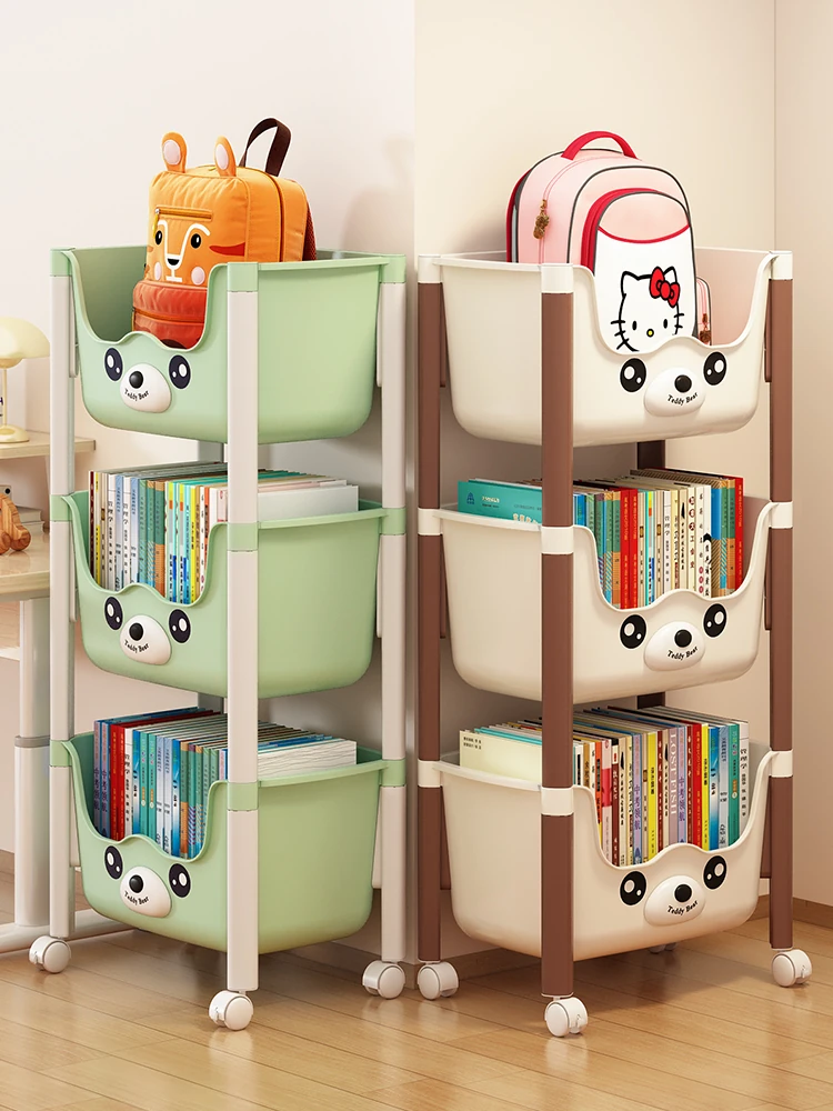 子供用フロア書棚 - リビングに最適な収納ラック!おもちゃやお菓子の整理に便利!デスク下にもぴったりな移動式カート。お子様の成長をサポートするおしゃれな収納アイテム!