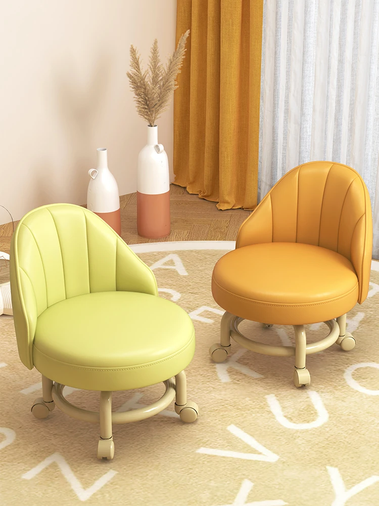 万能キャスター付き小さなスツール - 家庭用の便利な移動式低椅子!子供用の背もたれ付き、スムーズな美しい仕上げで、玄関での靴の着脱も楽々!おしゃれで機能的な丸椅子!